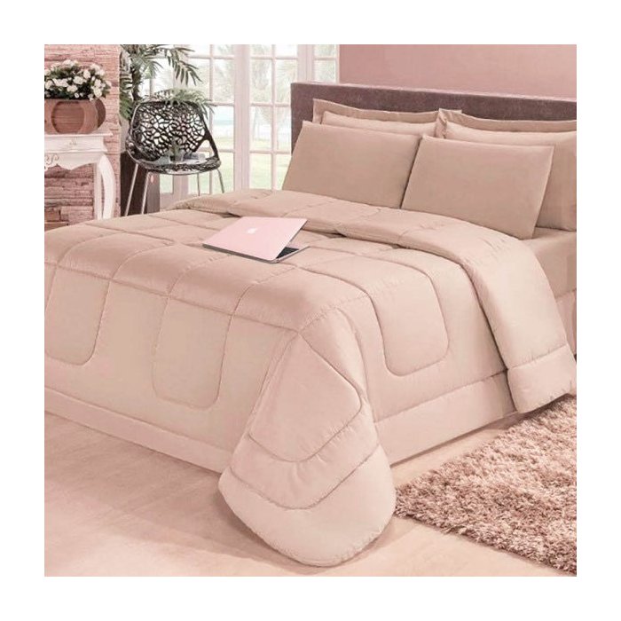 Jogo de cama Casal 6 peças com Edredom e Lençol Casa Dona Bege